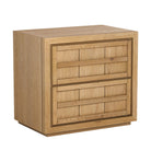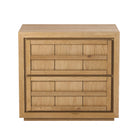 The Buddy nightstand combines the beauty of natural oak wood with a textured finish achieved through a wire brushing technique that showcases the depth and character of the wood grain.